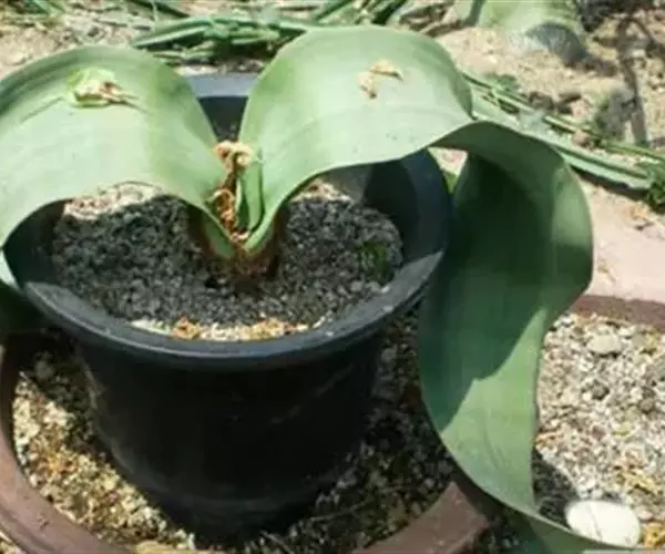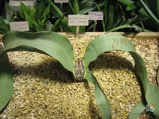 种子出苗后注意浇水和通风,等颗粒都干了再浇水,要绕盆少量浇水。还可以采取浸盆法给水,即盆底放一浅盆,浅盆内加些优质净水,这样做的目的是为了模拟荒漠下面有地下水。经常采取这种给水方式效果会更好,但也要防止过潮。浸盆的间隔时间要长,也可以常用喷雾式给水。如果通风不好很容易捂死幼苗。经过一年多的种植百岁兰的子叶渐渐凋谢,另外2片真叶会慢慢生长。这样百岁兰种植的第一步就成功了,剩下的就是平时浇水和施肥养护了。百岁兰施肥量不能大,可以用花宝1号或花多多11号以1:5000溶解于水中施用,每30天施1-2次。百岁兰生长时最低温度不得低于8℃,最高温度不得高于45℃。百岁兰种下后不要移盆,因为幼苗动根即死。