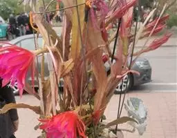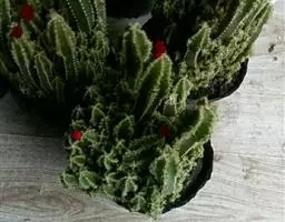 仙人掌科管花柱属,茎细圆柱状,高1.5m,粗6~7cm,有棱30。刺座密生,有白色刺毛状刺30~40,刺长1.5cm,有4根黄色的粗刺。春夏开花,花红色,浆果小球形。种子黑色。