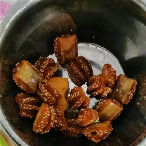 三、制作:头遍水烫,二遍水煮,大火小火要适度,煮到八分就捞出,出锅后冷水浸,经常换水肉质硬,泡得肉白就能用。