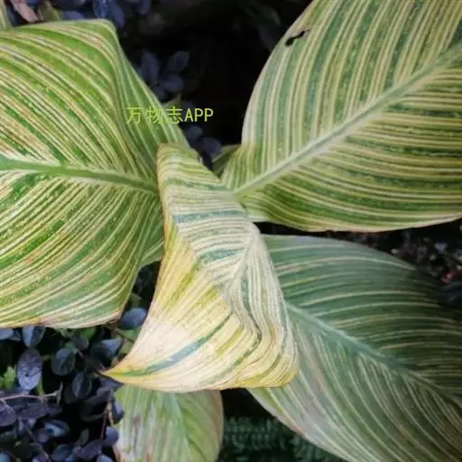 金脉美人蕉叶片淡黄色,叶脉绿化,叶缘具红边,全缘,大花美人蕉之变种