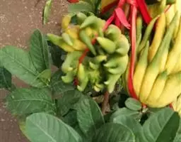 常绿灌木或小乔木。叶椭圆形,两端尖。果扁圆形,朱红色;味甜,可食。产自中国东南部,广东地区大量盆栽。