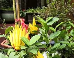 香橼为小乔木或灌木状;株高达5米;幼枝、芽及花蕾均暗紫红色;茎枝多刺,长达4厘米;单叶,…