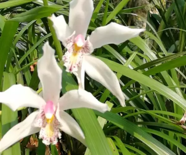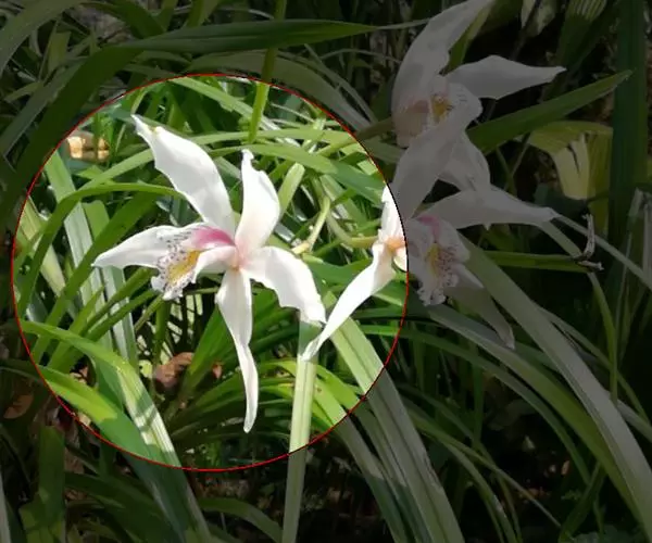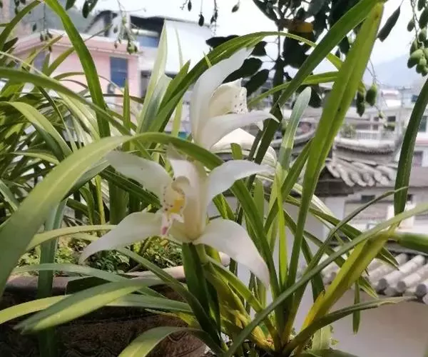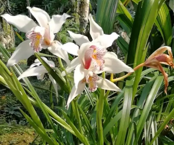 独占春(学名:Cymbidium eburneum Lindl.):附生植物;假鳞茎近梭形或卵形,包藏于叶基之内,基部常有由叶鞘撕裂后残留的纤维状物。叶6-11枚,每年继续发出新叶,多者可达15-17枚。花葶从假鳞茎下部叶腋发出,直立或近直立;总状花序具1-3朵花;花较大,不完全开放,稍有香气;萼片与花瓣白色,有时略有粉红色晕,唇瓣亦白色。