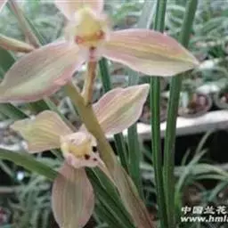 寒兰是兰科兰属的地生草本植物。茎为椭圆形;叶呈带状,尾部修长渐尖,叶脉较明显;每秆花枝开5-12朵,…
