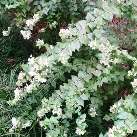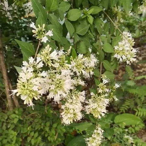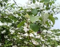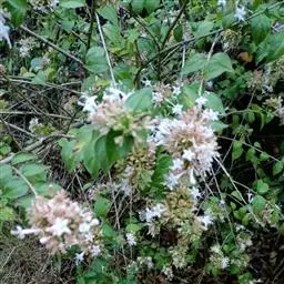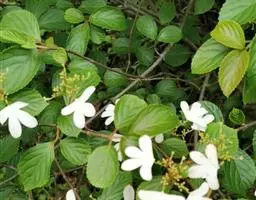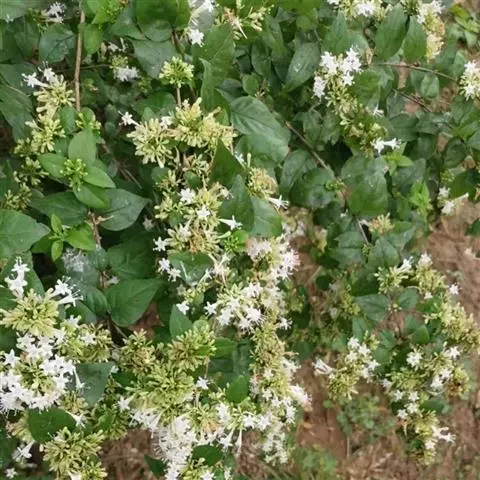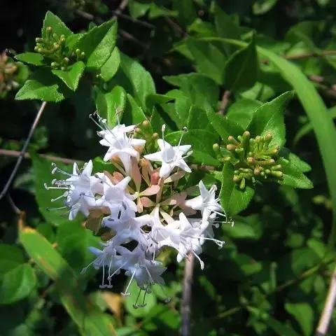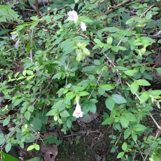 蓪梗花 落叶灌木,高1-2米;幼枝红褐色,被短柔毛,老枝树皮条裂脱落。叶圆卵形、狭卵圆形、菱形、狭矩圆形至披针形,长1.5-4厘米,宽5-15毫米,顶端渐尖或长渐尖,基部楔形或钝形,边缘具稀疏锯齿,有时近全缘而具纤毛,两面疏被柔毛,下面基部叶脉密被白色长柔毛;叶柄长2-4毫米。