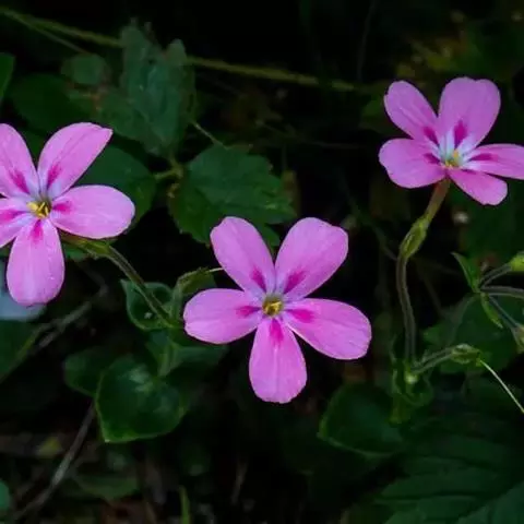 圆锥状聚伞花序顶生,有短柔毛,花梗很短;花萼筒状,萼裂片披针状钻形,长2-3毫米,外面有柔毛,结果时开展或外弯;花冠高脚碟状,直径1-2厘米,淡红、深红、紫、白、淡黄等色,裂片圆形,比花冠管稍短;雄蕊和花柱比花冠短很多。蒴果椭圆形,长约5毫米,下有宿存花萼。种子长圆形,长约2毫米,褐色。