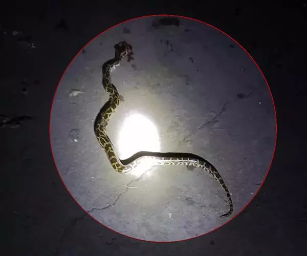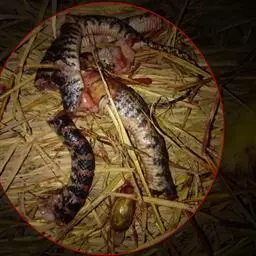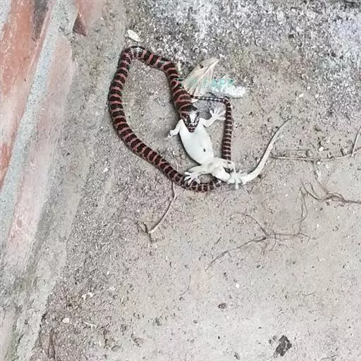 赤链蛇也很喜欢吃小鸡,孵鸡场淘汰的雏鸡也是一种上好的食料。