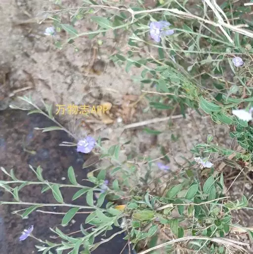 总花梗丝状,较叶短或长得多,长2.5-3.5厘米,被贴生毛;花单1或数朵组成聚伞花序,花柄与萼片等长或通常较萼片长;苞片线状钻形至线状披针形,长1.5-4毫米;萼片披针形,锐尖或渐尖,长3-4毫米,被长柔毛;花冠辐状,直径7-8(-10)毫米,蓝色或白色;雄蕊5,内藏,花丝丝状,长约4毫米,贴生于花冠管基部;花药长圆状卵形,先端渐尖,基部钝,长约1.5毫米;子房无毛;花柱2,每1花柱2尖裂,柱头圆柱形,先端稍棒状。