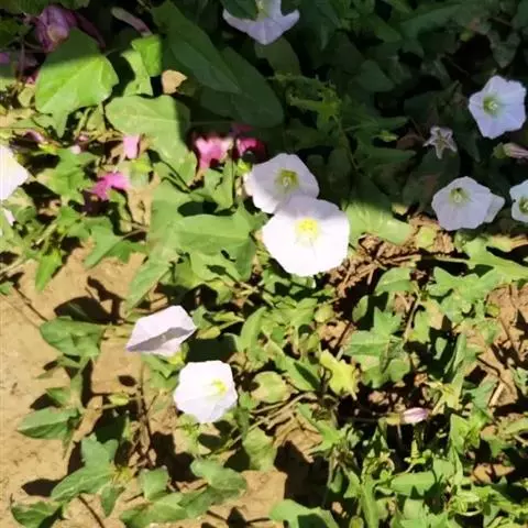 番薯 Lam.),多年生草质藤本植物,具有乳汁;其块根为白、红或黄色;茎生不定根;叶呈宽卵形或卵状心形,叶色有浓绿、黄绿、紫绿等,前端渐尖,基部呈心形或近平截;花冠为粉红、白、淡紫或紫色,呈钟状或漏斗状,无毛;蒴果呈卵形或扁圆形;由于番薯是于异花授粉,自花授粉常不结实,所以有时只见开花不见结果。 种子1-4粒,通常2粒,无毛。番薯原产于南美洲及大、小安的列斯群岛,现已广泛栽培在全世界的热带、亚热带地区,但在一些较北的地区如黑龙江省也已栽种成功,中国大多数地区都普遍栽培。番薯适应性强,喜温暖多光而不耐霜冻,抗旱耐碱,适种于肥沃而排水良好的砂质壤土,是一种易于保收的作物。番薯是一种高产而适应性强的粮食作物,在中国南方,有“一造番薯半年粮”的说法, 与工农业生产和人民生活关系密切;块根除作主粮外,也是食品加工、淀粉和酒精制造工业的重要原料;根、茎、叶可作