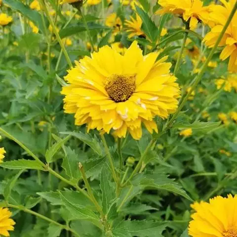赛菊芋是菊科赛菊芋属多年生草本植物。多分枝;叶对生,长卵圆形,先端圆钝,基部楔形,具长柄,边缘具锯齿,…