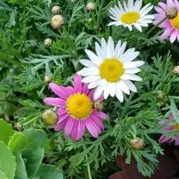 玛格丽特花叶宽卵形、椭圆形或长椭圆形,二回羽状分裂。一回为深裂或几全裂,二回为浅裂或半裂。舌状花瘦果有3条具白色膜质宽翅形的肋。两性花瘦果有1-2条具狭翅的肋,并有4-6条细间肋。冠状冠毛长0.4毫米。花果期2-10月。盆栽观赏,或作背景绿叶材料布置。
