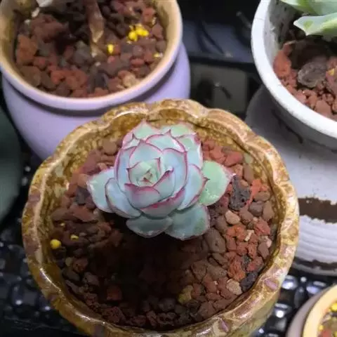女雏是景天科石莲花属的多肉植物。特征是小巧的株形和橙粉色叶缘。极易生侧芽,…