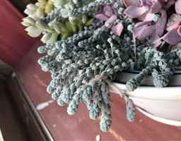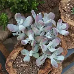 紫珍珠是景天科石莲花属的多年生肉质草本植物。植株中小型;叶片肉质,匙形,呈莲座状紧密排列;叶片粉紫色,…
