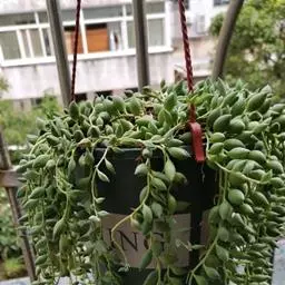 翡翠珠,是菊科千里光属的多年生常绿肉质草本植物。茎纤细,全株被白色皮粉;叶互生,较疏,圆心形,深绿色,…
