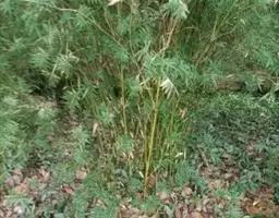 凤尾竹 Raeusch. ex Schult. ’Fernleaf’ R. A. Young)是禾本科,簕竹属孝顺竹的变种。植株较高大,杆高可达6米,竿中空,小枝稍下弯,下部挺直,绿色;竿壁稍薄;节处稍隆起,无毛;叶鞘无毛,纵肋稍隆起,背部具脊;叶耳肾形,边缘具波曲状细长繸毛;叶舌圆拱形,叶片线形,上表面无毛,下表面粉绿而密被短柔毛,小穗含小花,中间小花为两性;外稃两侧稍不对称,长圆状披针形,先端急尖;内稃线形,脊上被短纤毛,花药紫色,子房卵球形,羽毛状。成熟颖果未见。原产中国,华东、华南、西南以至台湾、香港均有栽培。凤尾竹喜温暖、湿润和阳光充足的环境,耐寒。宜土层深厚、肥沃、疏松的微酸性壤土。该种观赏价值较高,宜作庭院丛栽,也可作盆景植物。全草或根入药,味淡、微苦,性寒,有清热利湿、凉血止血、消肿解毒功效,可治痢疾、泄泻等多种病症。凤尾