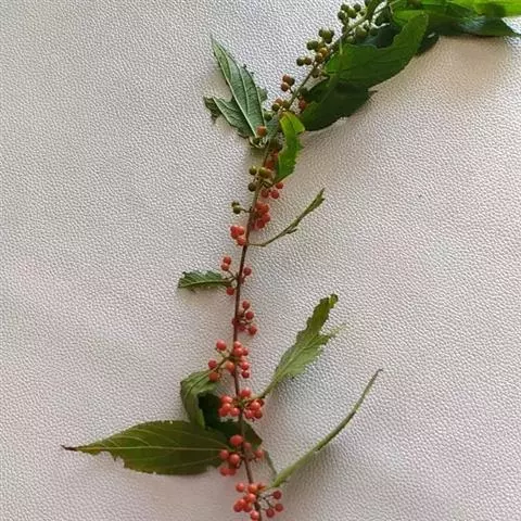 幼枝密被针刺及宽扁大形紫色皮刺,小叶片上面叶脉明显,…
