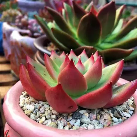 红边月影为景天科石莲花属多肉植物,在温差增大,光照增多时绿色的叶子会呈现边沿红色,非常好看!…