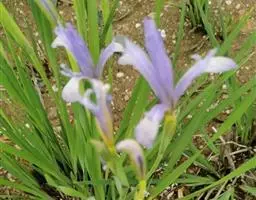 双色野鸢尾为多年生草本植物,叶子呈剑状淡绿色。…