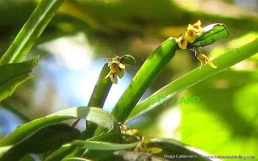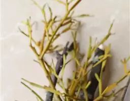 茎枝圆柱形,枝梢带叶或脱落无叶,长约30cm,粗枝直径约1cm,细枝直径2-6mm,节部膨大,节上有2-3叉状分枝或枝痕,茎技易由节处折断脱落,节间长2~9cm。表面金黄色、黄绿色或黄棕色,光滑无毛,有明显的不规则纵皱纹。体轻,质柔韧,不易折断,断面不平坦;皮部黄色;木部色较浅,有放射状纹理;髓小,常偏向一侧。叶对生于枝梢,易脱落,无柄;叶片倒披针形或长圆形,长2~7cm,宽0.5~1.5cm,先端钝圆,基部渐狭呈短柄状,基出脉5条,中间3条较明显,金黄色至黄绿色,有皱纹。革质而厚,略柔韧。偶有未脱落的花果;花小形,单生,或数朵簇生于枝梢两叶间;果椭圆形,直径约5mm,黄棕色或暗红色,皱缩。气微弱,味微苦,嚼之粘滑。以枝嫩、色黄绿、叶多者为佳。