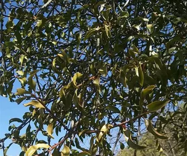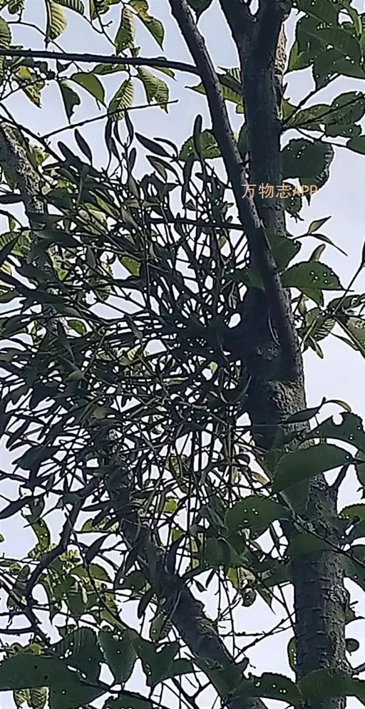 槲寄生的生长方式是典型的二叉分枝,近观其多年生的个体形态曲折优美。由于槲寄生通常成簇生长在寄主的不同部位,远观像一个个生长在树上的鸟巢,激发游人的好奇心和游览兴致。