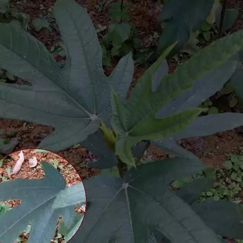 该病大树和苗木均会发生,其在八角的不同部位,常呈现不同症状。叶片发病多在叶缘、叶尖和叶片中部。初期出现暗褐色水渍状小斑,逐渐扩大成不规则的黄褐色大斑,后期病斑中部变为灰褐色,其上密布小黑点的病班;病班中央穿孔,叶片渐渐枯萎脱落。湿度较大时,病症为桔红色粘状小颗粒。幼苗茎基部发病时呈水渍状褐色小班,后扩大成黑腐斑,并使苗木迅速枯死。