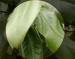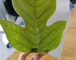 发病植株几乎所有叶片均感病,病叶产生绉缩、扭曲、叶肉瘦变厚等畸型症状。嫩枝和嫩梢以及叶柄等均有一定的绉缩畸型症状。叶片和嫩枝梢畸型的部位上都有不规则的褪绿状。绿色和淡绿色斑驳相间。有的感病部位明显地表现有蛞蝓爬过的痕迹。