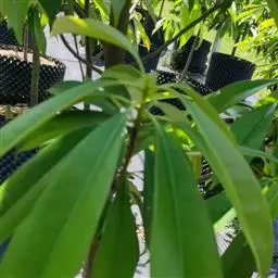 叶不整齐互生,在顶端3-6片近轮生或松散簇生,革质,厚革质,倒卵状椭圆形,倒披针形或椭圆形,长5-15厘米,宽2-5厘米,先端骤尖或短渐尖,基部渐狭或楔形;在阳光下可见密布透明油点;中脉在叶上面稍凹下,在下面隆起;叶柄长8-20毫米。