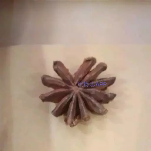 野八角:由10-14个果组成。单一果呈不规则广锥形,长1.6-2厘米,宽0.4-0.6厘米,先端长渐尖,略弯曲。果皮较薄,果梗长约1.5-2厘米,味淡,久尝有麻辣感。