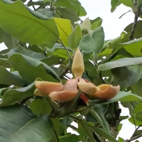 深山含笑是木兰科含笑属常绿大乔木。株高达20米;芽、幼枝、叶下面、苞片均被白粉;叶为革质宽椭圆形,…