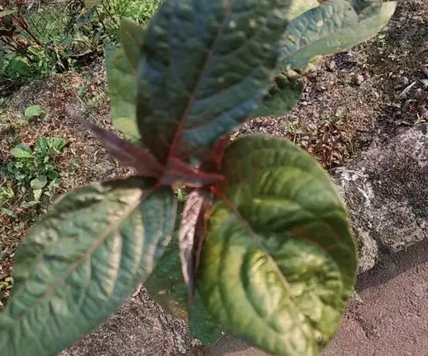 Achyranthes bidentata Blume var. bidentata forma rubra Ho forma nova Radix rubella vel rubra, folia subtus dense purpureorubra vel purpurea, inflorescentiae purpurinae.