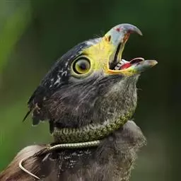 虹膜黄色,幼鸟褐色;嘴黑色,嘴基淡黄色;蜡膜黄绿色;脚和趾深黄色,爪黑色。