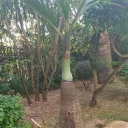 霸王棕是棕榈科霸王棕属常绿乔木,高可达20~30米。基部膨大,叶基宿存。叶片扇形,掌状分裂,…