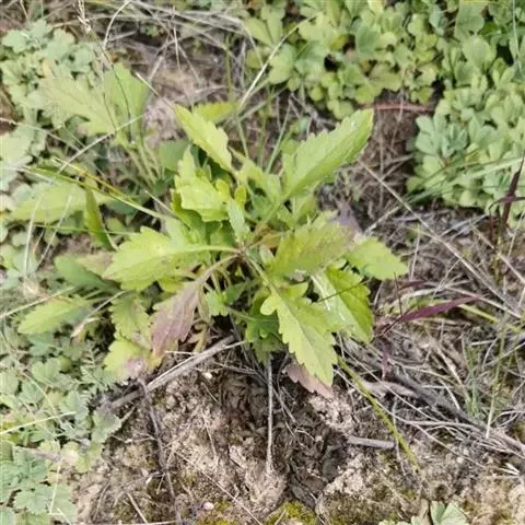 基生叶丛生,花时枯落,卵形、椭圆形或椭圆状披针形,长(1.8-)3-10.5厘米,宽1.2-3厘米,不分裂或羽状分裂或全裂,顶端钝或尖,基部楔形,边缘具粗锯齿,上面暗绿色,背面淡绿色,两面被糙伏毛或几无毛,具缘毛;叶柄长3-12厘米;茎生叶对生,宽卵形至披针形,长5-15厘米,常羽状深裂或全裂具2-3(-5)对侧裂片,顶生裂片卵形、椭圆形或椭圆状披针形,先端渐尖,具粗锯齿,两面密被或疏被白色糙毛,或几无毛,上部叶渐变窄小,无柄。
