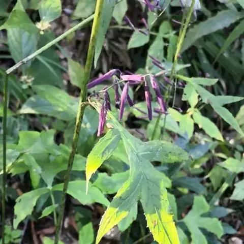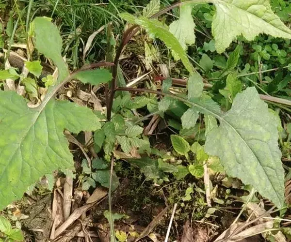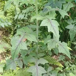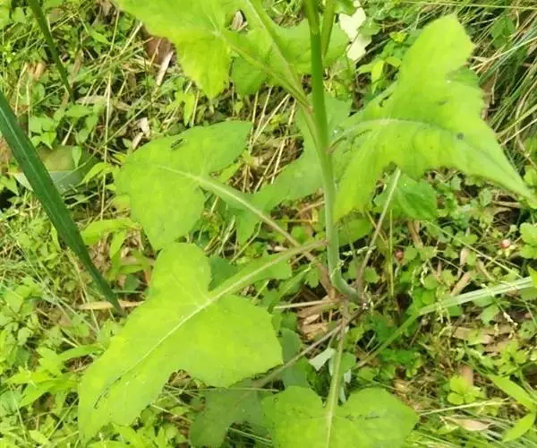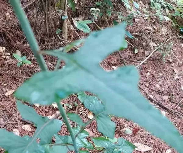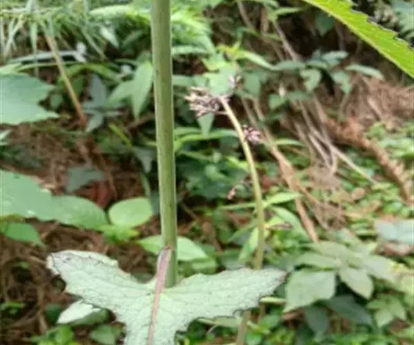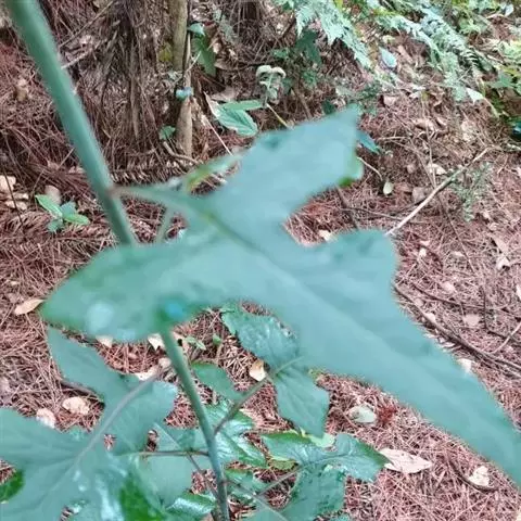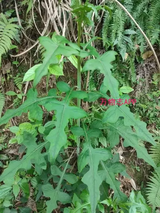7 基生叶花期枯萎;下部及中部茎叶大头羽状半裂或深裂或几全裂,极少羽状深裂或几全裂,有长4-7厘米的狭或宽翼柄,顶裂片大,宽三角状戟形、三角状心形、三角形或宽卵状三角形,长5.5-15厘米,宽5.5-15厘米,顶端急尖,边缘有大或小锯齿或重锯齿,齿顶及齿缘有小尖头,基部戟形或心形或平截,极少顶裂片与侧裂等大或几等大,披针形或不规则菱状披针形,长4-11厘米,宽3-7厘米,侧裂片1-2(3)对,椭圆形,下方的侧裂片更小,三角状锯齿形,全部侧裂顶端圆形或急尖,有小尖头,边缘有小尖头状锯齿;羽轴有宽或狭翼;上部茎叶小,不裂,戟形、卵状戟形、披针形或长椭圆形,有短翼柄或无柄;全部叶两面无毛。