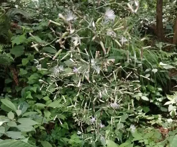 瘦果黑色,稍粗厚,见压扁,纺锤状,顶端窄,淡黄白色,长4.3-5毫米,每面有5条高起纵肋。冠毛2层,白色,长7毫米,微糙毛状。