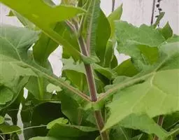 茎基部叶较疏,基部渐狭成具翅具长达20厘米的柄,叶片椭圆状披针形至披针形,长10~40厘米,宽10~25厘米,先端尖,边缘不规则的齿或重齿,上面被基部疣状的糙毛,下面被黄绿色密茸毛,叶脉在下面稍隆起,网脉明显;中部叶卵圆状披针形或长圆形,较小,基部心形,半抱茎;上部叶披针形,小。