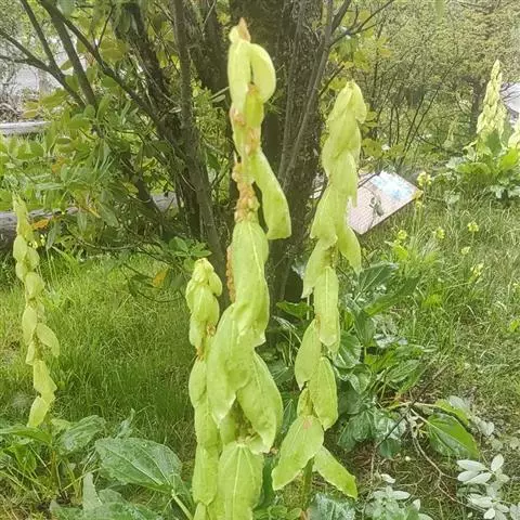 苞叶大黄,(拉丁学名:Rheum alexandrae Batal.)是蓼科,大黄属多年生高中草本植物。高可达80厘米,根状茎及根直而粗壮,茎粗壮挺直单生,不分枝,常为黄绿色。茎生叶及叶状苞片多数;叶柄与叶片近等长或稍长,半圆柱状,托叶鞘大,棕色,叶柄亦较短或无柄。花序分枝腋出,直立总状,无毛;花小绿色,数朵簇生;花梗细长丝状,光滑无毛;花被基部合生成杯状,裂片半椭圆形,花药矩圆状椭圆形;花盘薄;子房略呈菱状倒卵形,果实菱状椭圆形,深棕褐色。光滑,6-7月开花,9月结果。