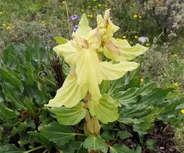 掌叶大黄蓼科,大黄属高大粗壮草本植物,高可达2米,粗壮木质根状茎。茎直立中空,叶片长宽近相等,基部…