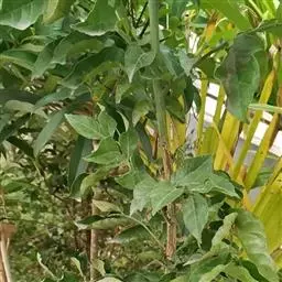 荚果宽长圆状,近菱形,长2.1-3.9厘米,宽0.5-0.7厘米,成熟时亮黑色,先端具喙,微弯。