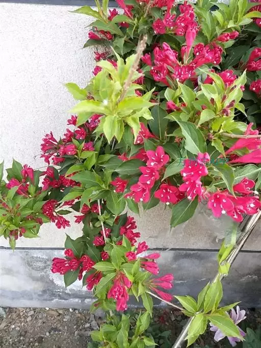 红王子锦带花,系锦带花的一个园艺品种,是从美国引进的优良树种。夏初开花,花朵密集,花冠胭脂红色,艳丽悦目,花期长达一月之久,从5月初始花,可延续到6月上中旬,花序下有盛开的花朵。可孤植于庭院的草坪之中,也可丛植于路旁,树形格外美观。