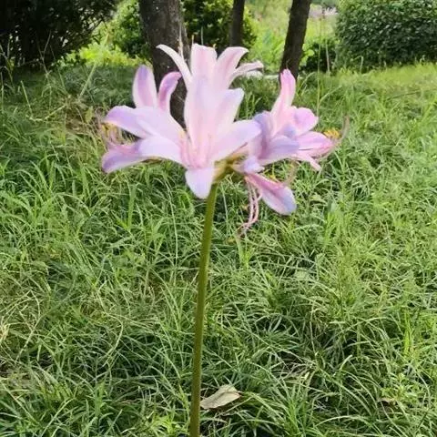 稻草石蒜草本,地生。鳞茎近球形;叶带状;伞形花序,有花5-7朵,花稻草色;花被裂片腹面散生少数粉红…