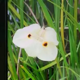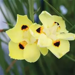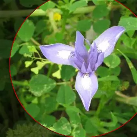 双色野鸢尾为多年生草本植物,叶子呈剑状淡绿色。…