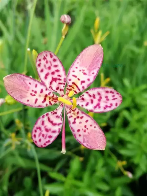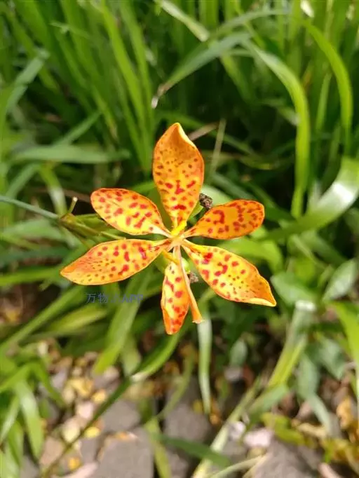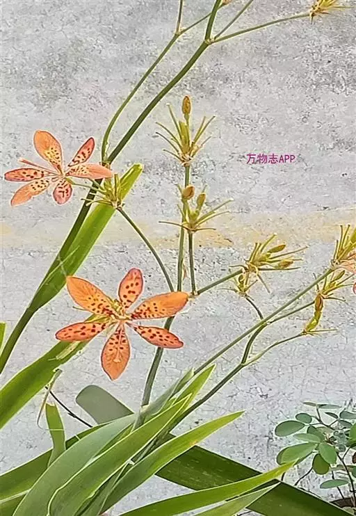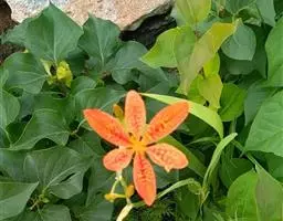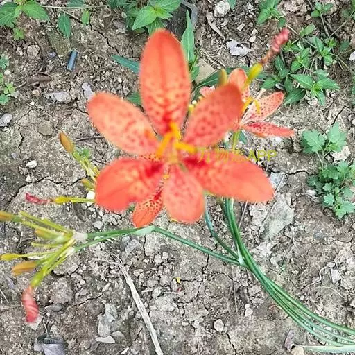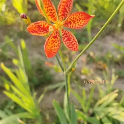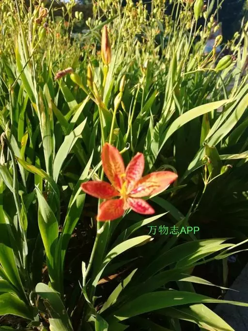 射干(学名:Belamcanda chinensis (L.)Redouté)为多年生草本。根状茎为不规则的块状,斜伸,黄色或黄褐色;须根多数,带黄色。茎直立,茎高1~1.5米,实心。