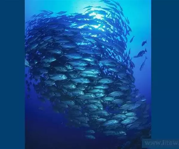 生存环境温度:26°C - 29°C 圆柱形六带鲹鱼群风暴