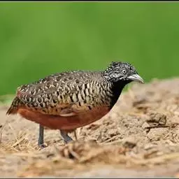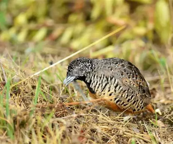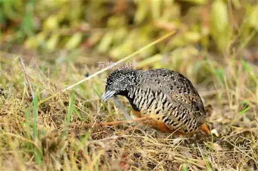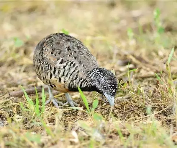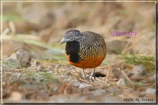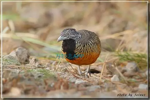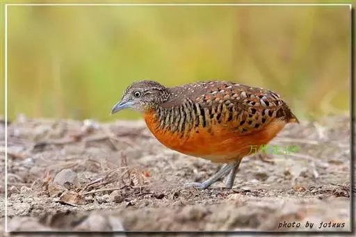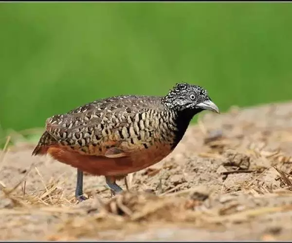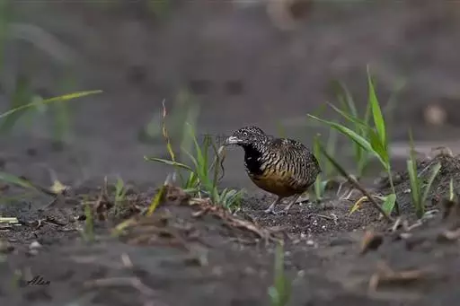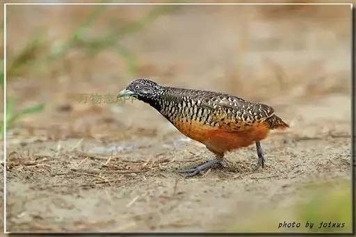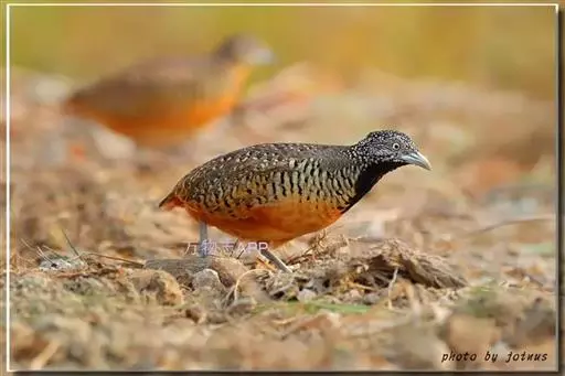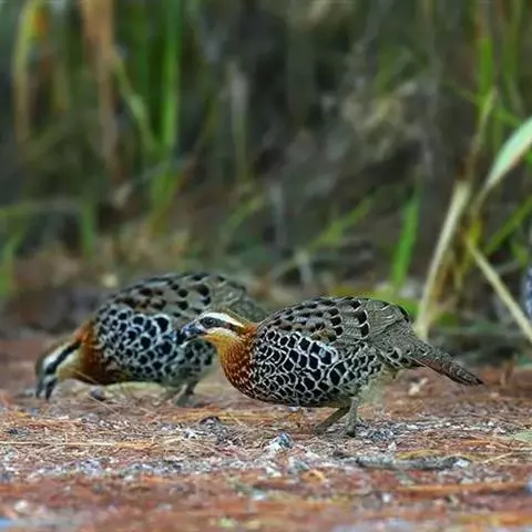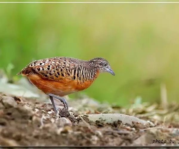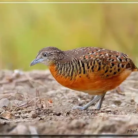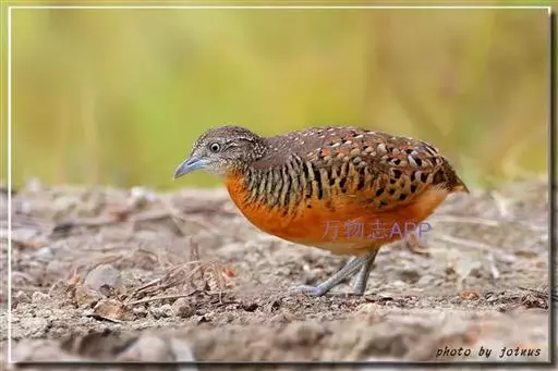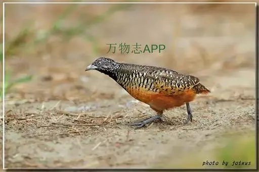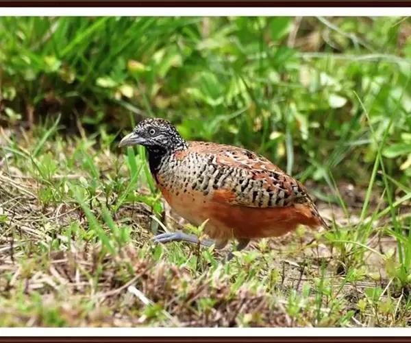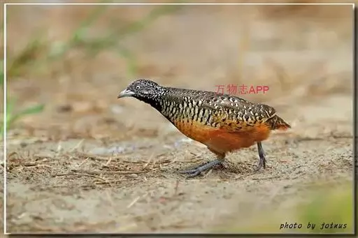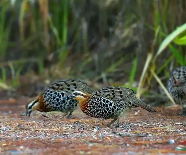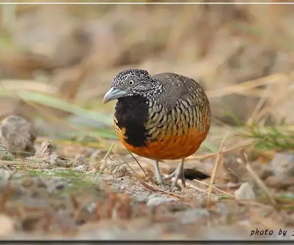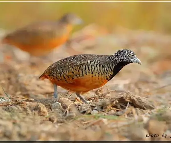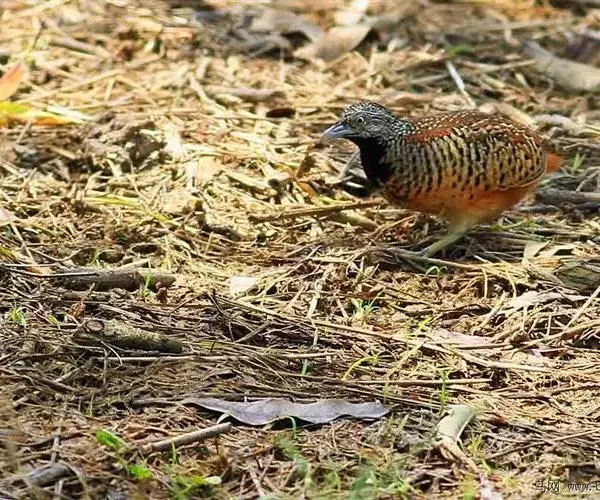 林三趾鹑(学名:Turnix sylvaticus)小型鸟类,体长11~15厘米。外形很像鹌鹑,但胸为棕黄色,两胁有黑色斑点,头具淡乳黄色中央冠纹。头两侧和喉白色,腹亦为白色。尾较尖,无后趾。相似种鹌鸫体型较大,脚具后趾,尾短,具白色眉纹,胸白色而不为棕色,两胁具栗色条纹,区别极明显,容易识别。