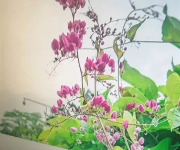 珊瑚藤(学名:Antigonon leptopus Hook. et Arn.)是蓼科珊瑚藤属植物,多年生攀援藤本,长达10米。茎自肥厚的块根发出,稍木质。叶有短柄;叶片卵形或卵状三角形。花序总状,顶生或腋生,花序轴顶部延伸变成卷须。瘦果卵状三角形,长约10毫米,平滑,包于宿存的花被内。