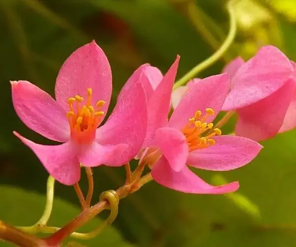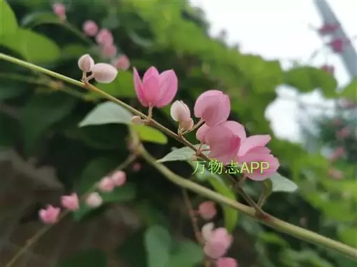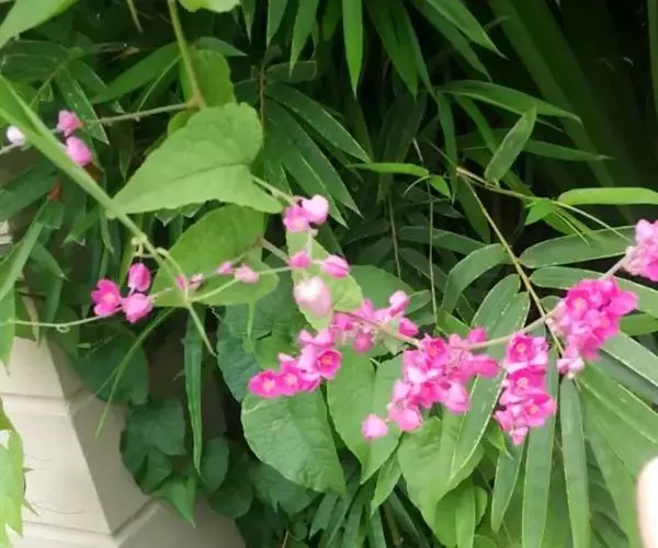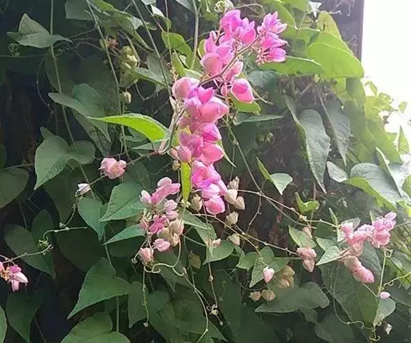 珊瑚藤花期极长,繁花满枝,美丽异常,被称为藤蔓植物之后。若攀援在树上,则满树粉红,让人分不清是树还是藤在开花。在园林中可用于凉亭、棚架、栅栏的绿化,也可植于坡面做地被植物,同时也是庭院垂直绿化的良好材料。