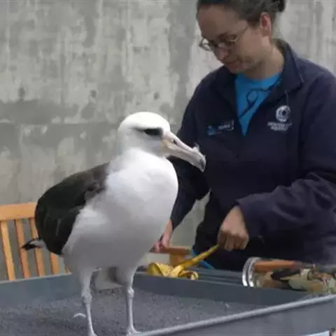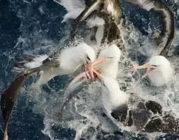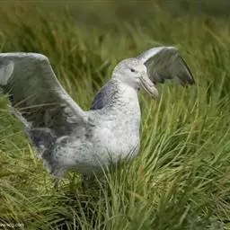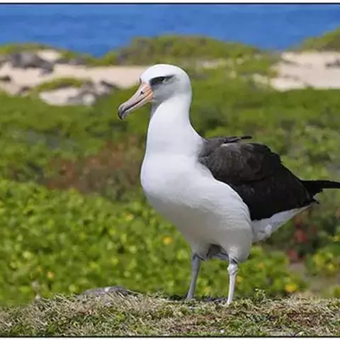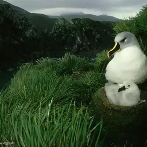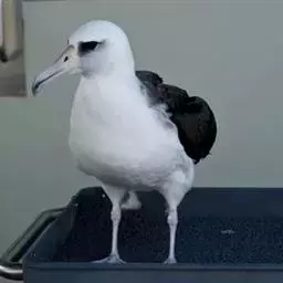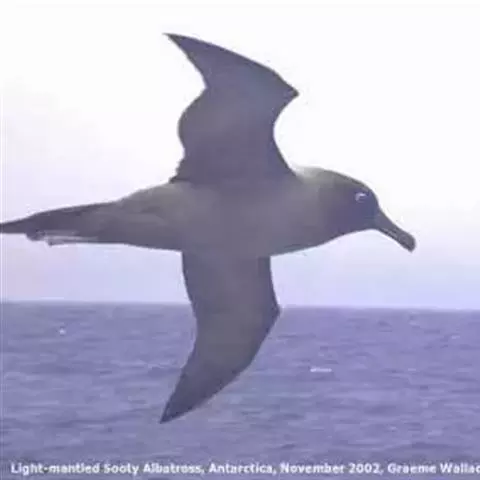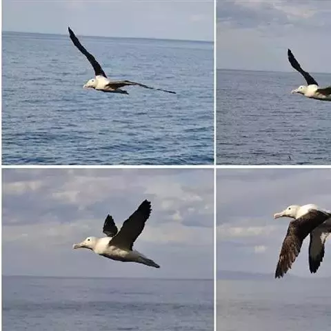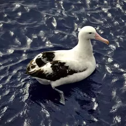 黑背信天翁:是一种中等体型的信天翁,81厘米长,体重2210-2800克,是一种有极长翼羽的大鸟,…