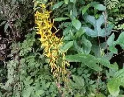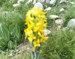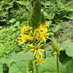 圆锥状总状花序或总状花序长达20厘米,常疏离;苞片披针形至线形,有时长于花序梗,长达8厘米;花序梗长达10.5厘米,一般长0.5-3厘米;头状花序多数,辐射状,常偏向花序轴的一侧;小苞片线状钻形;总苞陀螺形,基部尖,长5-14毫米,宽5-15(20)毫米,总苞片7-9,2层,卵形或披针形,宽2-7毫米,先端急尖,背部光滑,内层边缘膜质。舌状花黄色,舌片宽椭圆形或卵状长圆形,长7-14毫米,宽3-6毫米,先端急尖,管部长约2毫米;管状花多数,长5-6毫米,管部长约1毫米,冠毛白色与花冠等长。