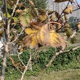 红蜘蛛是危害山里红重要害虫。该虫主要吸食叶片及初始萌发芽的汁液,且危害幼果。芽严重受害后不能继续萌发而死亡。叶片严重受害后可全叶变黄、焦枯而脱落。